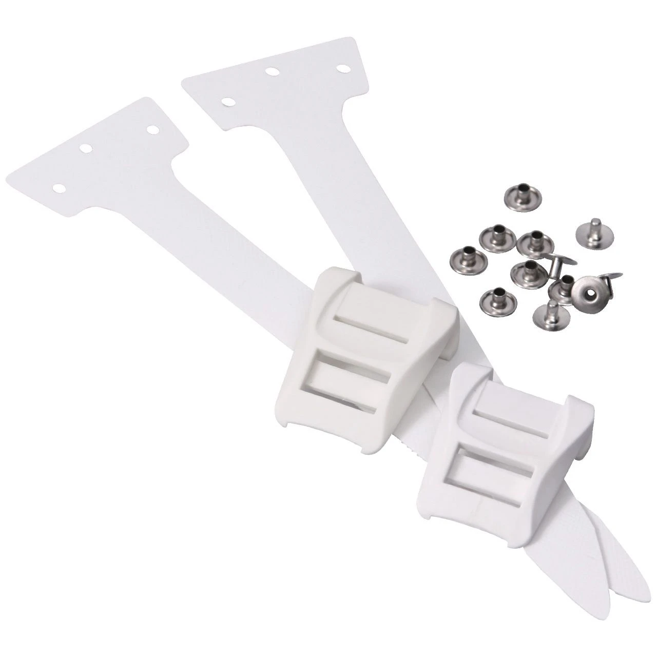 Kunststof eindhaakset compleet met lint en klinknagelset.